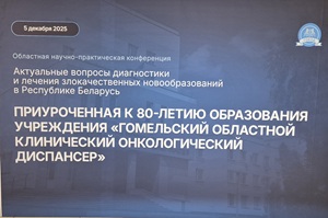 5 декабря 2025 г. на базе ГУ «Городской центр культуры» состоялась областная научно-практическая конференция «Актуальные вопросы диагностики и лечения злокачественных новообразований в Республике Беларусь», приуроченной к 80-летию образования учреждения «Гомельский областной клинический онкологический диспансер».